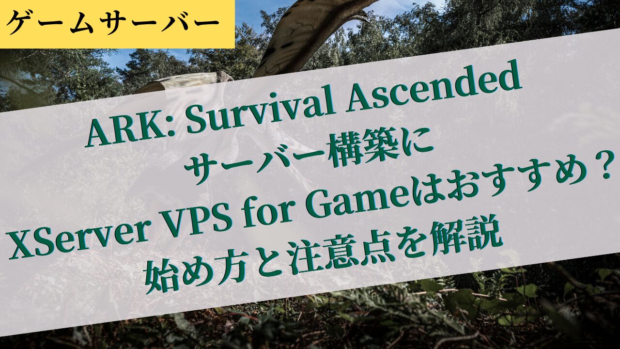 ARK: Survival Ascendedの非公式サーバーを立てる先として、XServer VPS for Gameは十分に検討しやすい選択肢です。