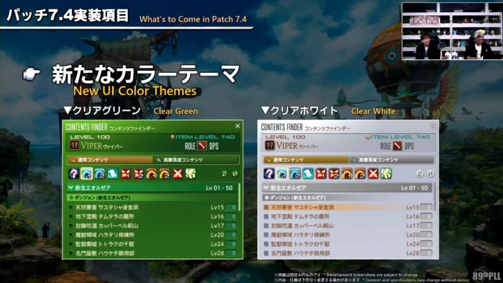 第89回PLLでは、パッチ7.4「霧の中の理想郷(アルカディア)」を中心に、プレイヤー生活を快適にする改修と新コンテンツが多数発表されました。