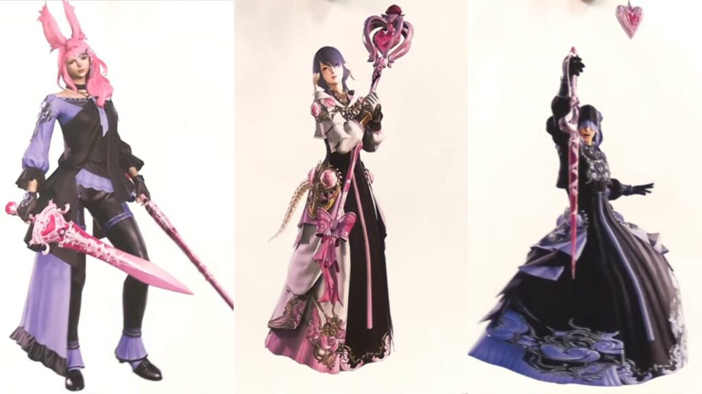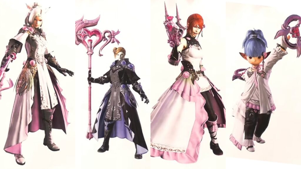 優雅さと可憐さを両立した衣装で、ジョブ別の雰囲気の違いも楽しめます。