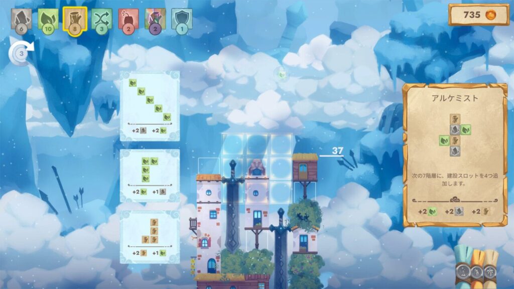 雲の彼方を目指して塔を積み上げる、ミニマルなストラテジーゲームです。
