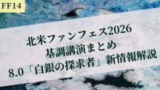 FF14北米ファンフェス2026基調講演の発表内容をまとめて解説。8.0「白銀の探求者」、第四世界、新ジョブ、リボーンモードとエヴォルヴモード、エヴァンゲリオンコラボ、パッチ7.5x情報、Nintendo Switch 2版まで整理しています。